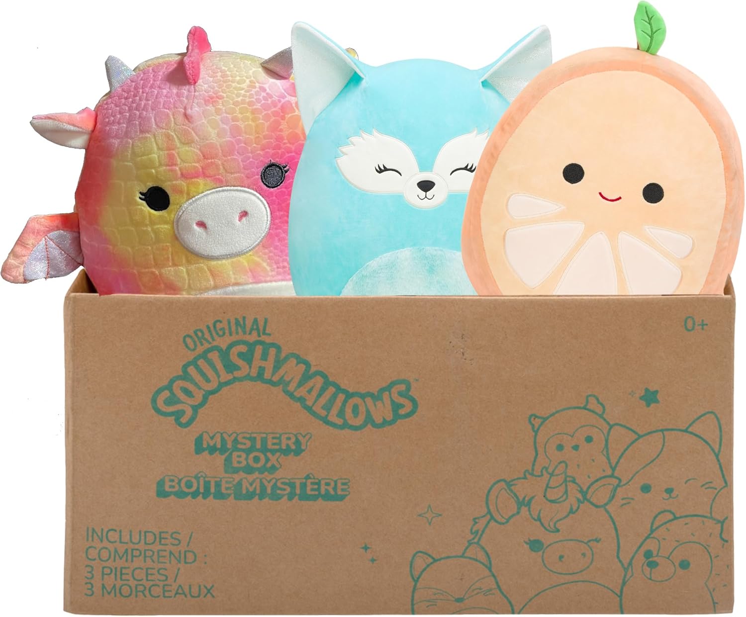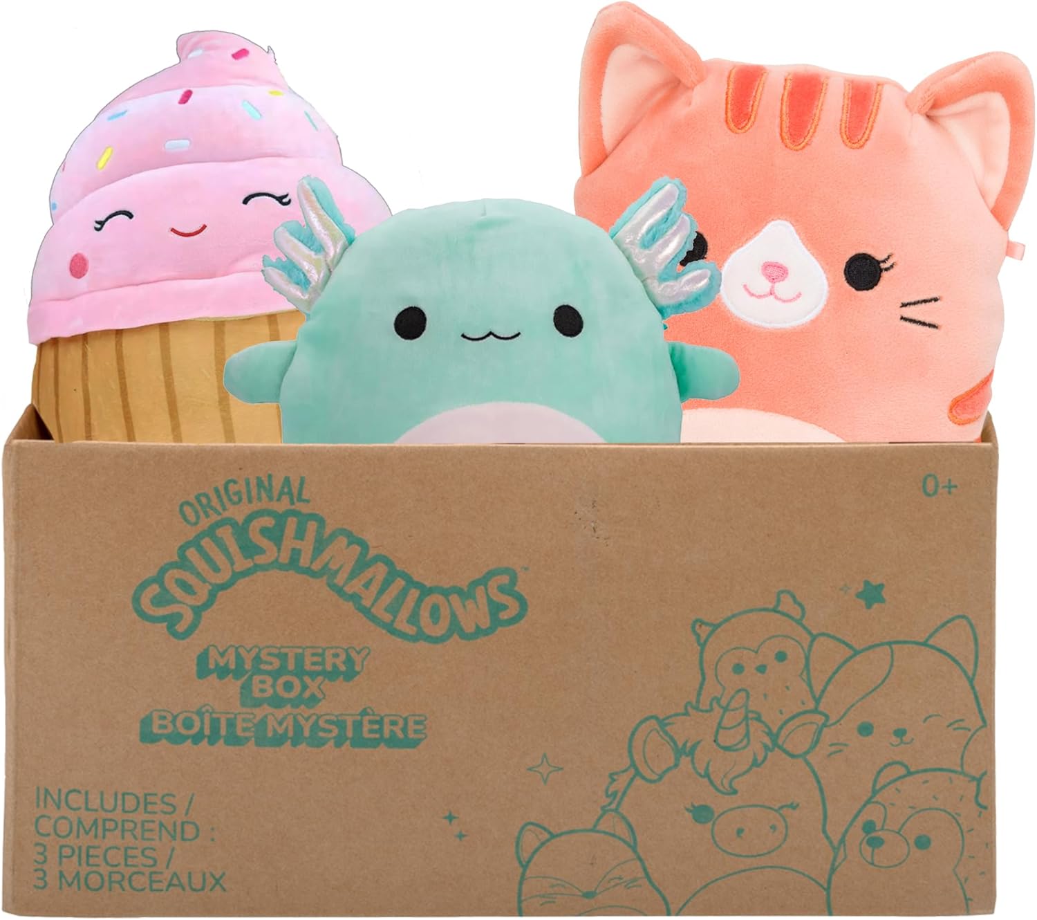 Ta razburljiva škatla presenečenje vključuje tri edinstvene Squishmallowse, od katerih je vsak velik približno 22 cm.