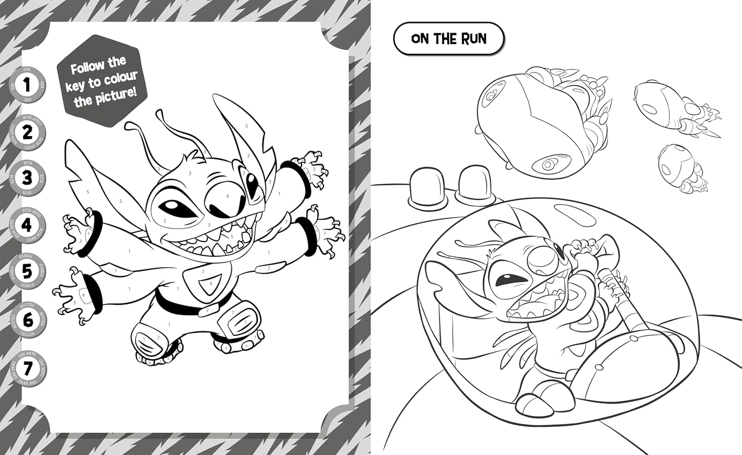 Vstopite v Stitchov vesoljski svet in oživite svoje najboljše like, kot so Stitch, Angel in vsa norčava družba. Ta debela knjiga združuje različne kreativne in poučne aktivnosti, ki otrokom pomagajo pri razvoju motoričnih sposobnosti in prepoznavanju številk.